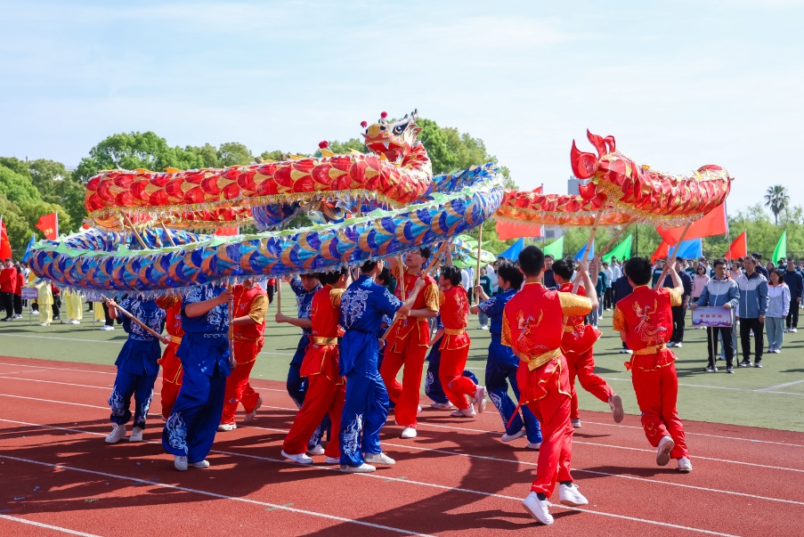 在学校党政领导的支持和关心下,学校体育工作备受重视,通过多部门协作、共同发力,将“健康第一”的教育理念有机融入体育工作全过程。近两年,学校体育工作也取得优异成绩,在首届全国学生(青年)运动会上,由学校组建的上海代表团武术队(大学组)喜获1金2银1铜;校武术队在全国中医药院校第十五届传统保健体育运动会上获单位团体总分第一名;校杏林教工队在上海市第九届职工运动会上获单位团体总分第三名;教工乒乓球队在全国第五届中医院校教工乒乓球比赛获第五名。开幕式学生舞龙队、武术队、健美操队等活力四射、激情昂扬的体育教学项目展演充分展示了杏林学子青春飞扬、拼搏奋斗的校园生活,赢得全场观众阵阵热烈掌声和欢呼。