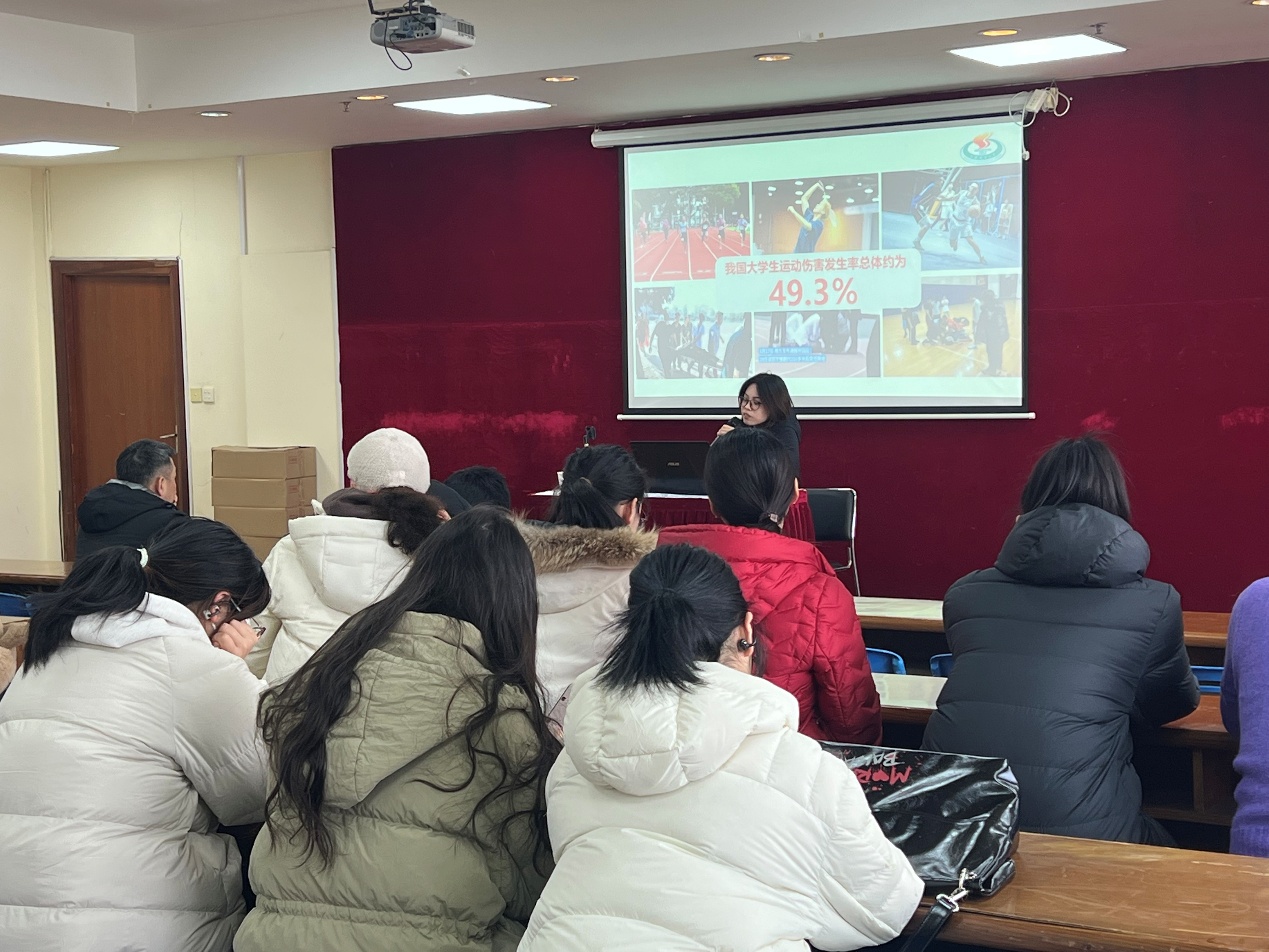 为切实提升校园体育活动安全保障水平,强化体育教师及学生应对运动伤害的应急处置能力,2026年1月21日下午,体育部举办“运动急救 安全护航——运动伤害应急处置专项培训”。全体体育教师、部分本科生代表参加培训,通过理论授课与实操演练相结合的方式,筑牢校园体育运动安全防线。