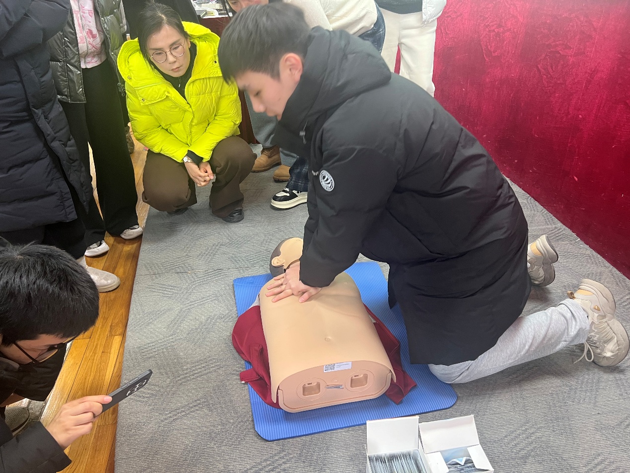 实操演练环节成为培训的核心亮点。在专家的现场示范与手把手指导下,参训人员分别体验了心肺复苏(CPR)、自动体外除颤器(AED)的规范使用。专家对每一位参训人员的操作动作逐一纠正,确保按压深度、频率度等细节规范到位,帮助大家将理论知识转化为肌肉记忆,切实提升应急实操能力。