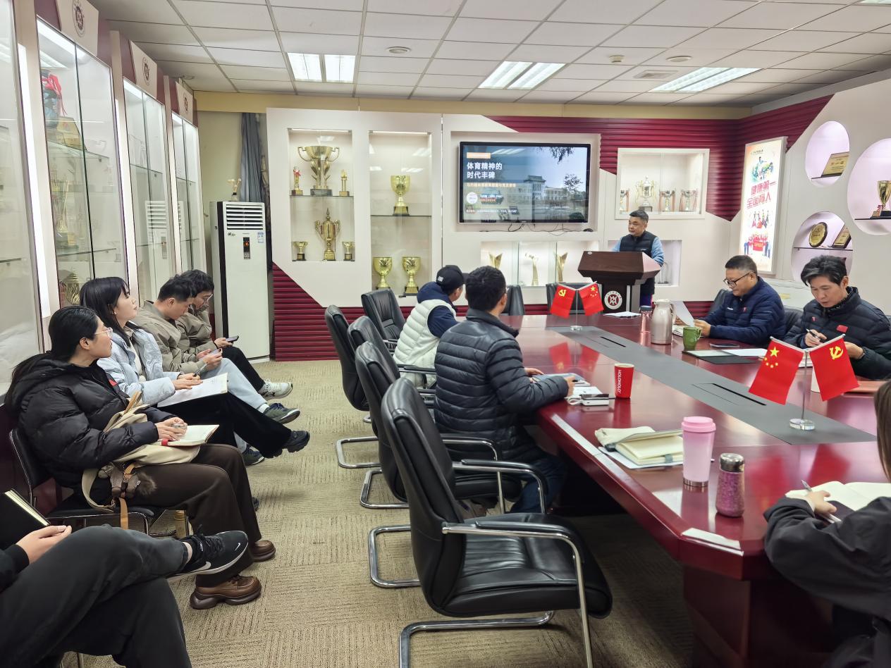 2026年1月14日,体育部党支部召开党员大会,开展2025年度党支部书记抓基层党建述职评议工作,并安排专题党课学习。会议由党支部书记龚博敏主持,龚博敏书记作党建述职报告,陆松廷主任讲授专题党课,体育部全体党员参加。